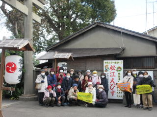 | 2026年1月11日 初詣ウォーク【中松江 春日神社 えびす詣り】&新年会 (ウォーク28名参加)(新年会28名参加) 中松江駅→「春日神社」→電車組とウォーク組に分れ新年会会場「笹一寿司」梶取店 |